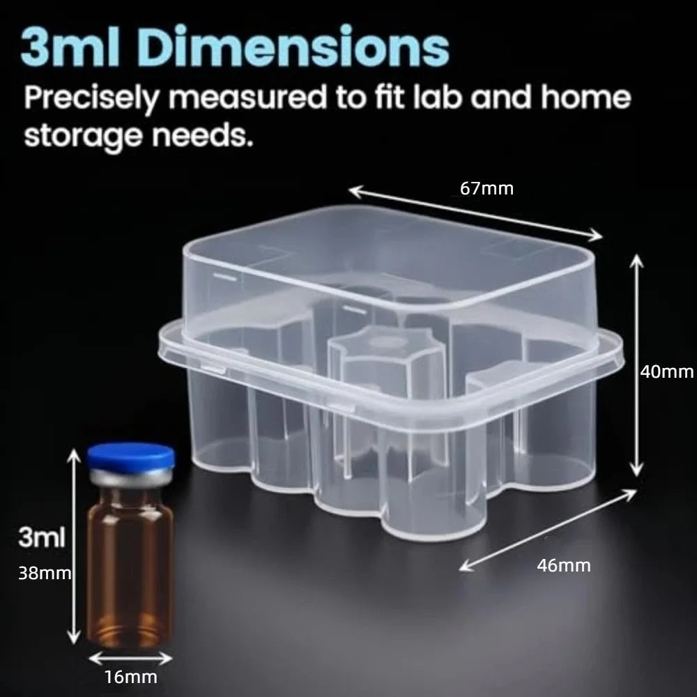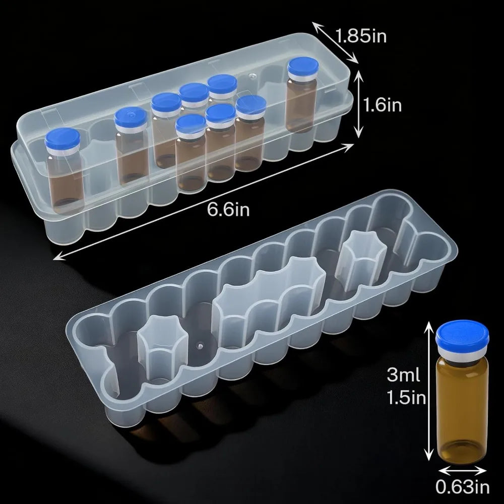 100% Brand New and High Quality! Type:Vial Storage Case Color:Transparent Material:Plastic Size:3/5/7/10mL Feature: FRIDGE & FREEZER SAFE MATERIAL Engineered for cold storage environments. Constructed from durable, medical-grade PP plastic, this peptide case for freezer reliably withstands temperatures from 14°F to 212°F (-10°C to 100°C), ensuring your temperature-sensitive medications remain protected and stable. SEMI-TRANSPARENT FOR INSTANT VISIBILITY Effortlessly manage your inventory. The semi-transparent design of this peptide vial case allows you to quickly check vial labels, medication levels, and expiration dates with just a glance, saving time and reducing handling of the vials. STACKABLE & SPACE-EFFICIENT Maximize your refrigerator's layout. These vial holders for fridge feature a secure, stackable design that allows you to build a vertical storage system. This saves valuable shelf space and keeps all your vials neatly organized and easily accessible. STURDY & HASSLE-FREE CLEANING Built to last with smooth, non-porous plastic that resists odors and stains. Simply wipe clean with a damp cloth for easy maintenance. This robust peptide case is a dependable, long-term solution for managing your essential healthcare supplies. Package Includes:1×Vial Storage Case Note: 1. There is a 2-3% difference according to manual measurement. Please check the size carefully before you buy the item. 2. Please note that a slight color difference should be acceptable due to the light and screen.